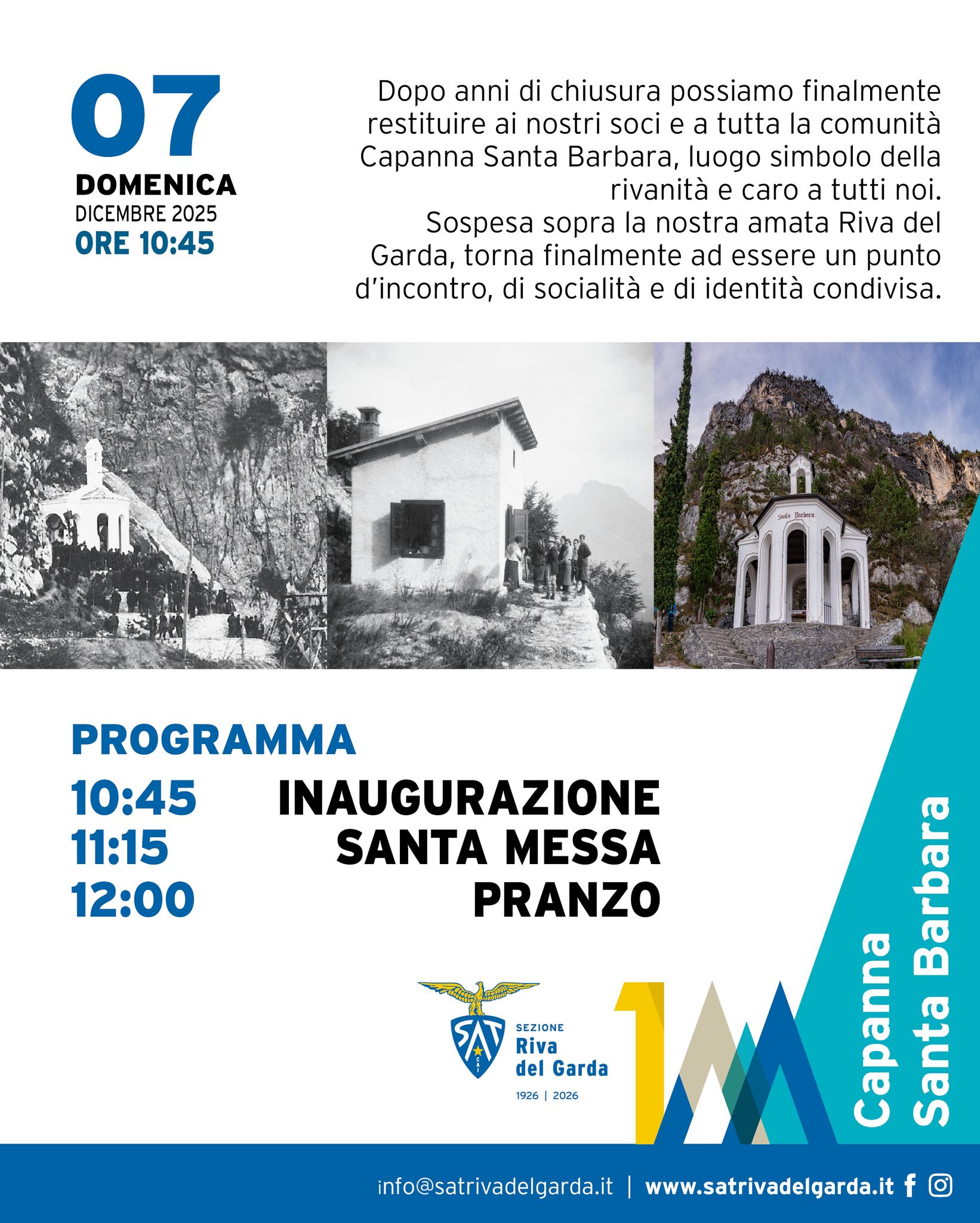 Un momento importante per la Sat di Riva del Garda e per tutta la comunità: la capanna e la chiesetta di Santa Barbara, luoghi-simbolo della rivanità, tornano finalmente al loro ruolo di punto d’incontro e di luoghi di socialità e di identità condivisa.