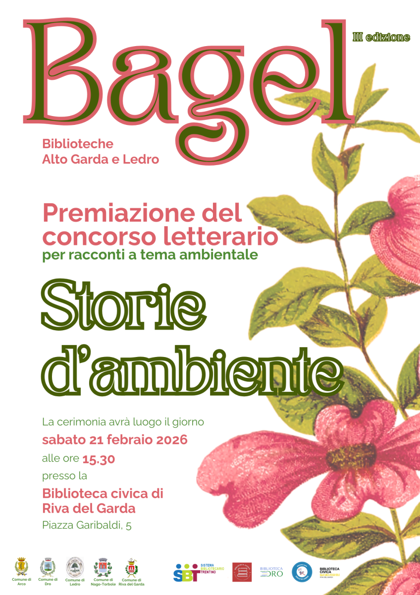 Le parole incontrano la natura in un pomeriggio dedicato alla scrittura, all’ambiente e alla condivisione, sabato 21 febbraio alla premiazione del concorso letterario «Storie di ambiente», novità della terza edizione di Bagel, la rassegna delle biblioteche dell’Alto Garda e di Ledro, dedicato quest'anno al tema dell’ambientale.