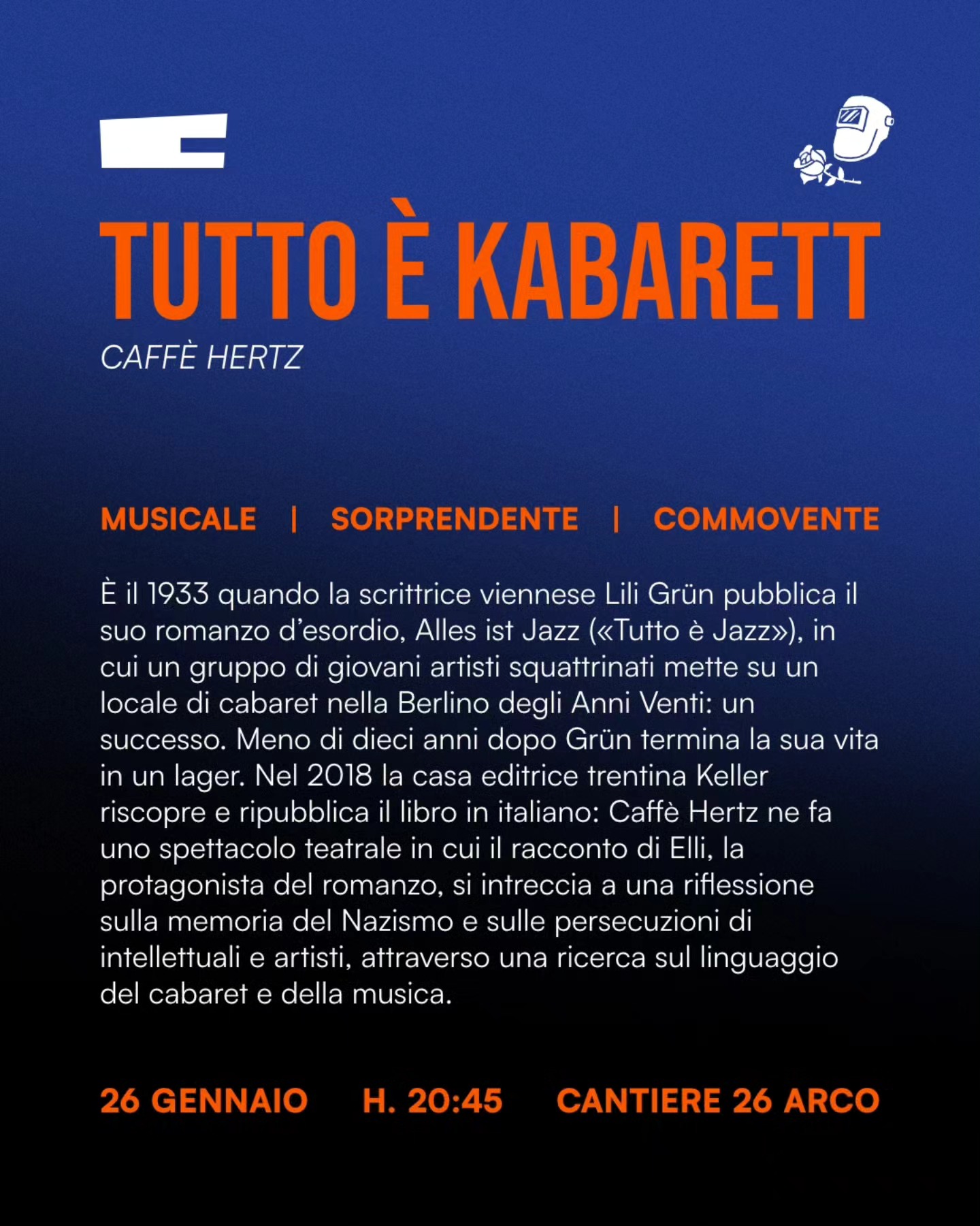 «Tutto è Kabarett» è sostenuto da Anpi Alto Garda e Ledro, che condivide l’impegno di Teatro Cantiere nella cura della memoria e nell’antifascismo.