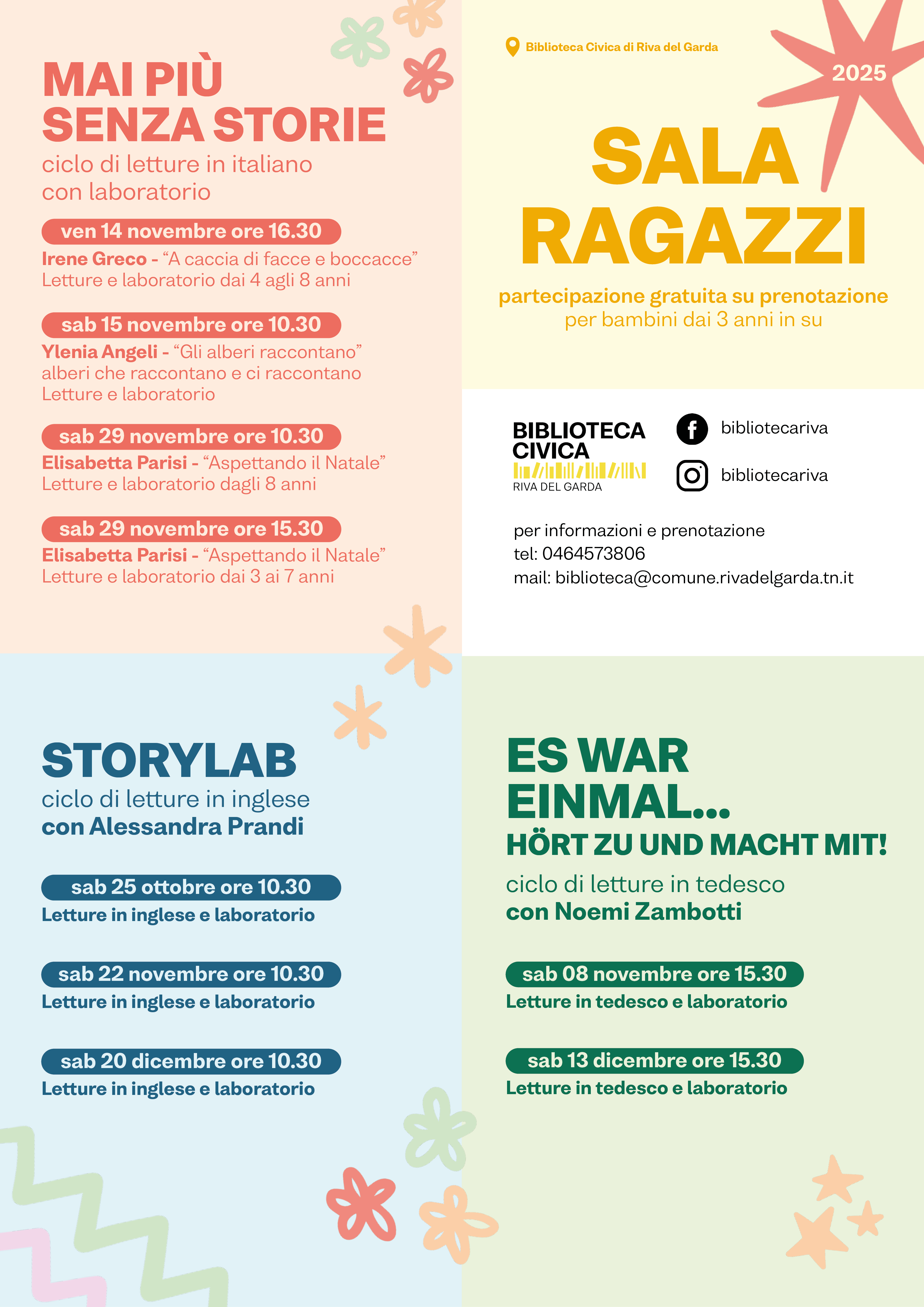 Ritorna anche quest'anno l'amatissimo appuntamento del sabato mattina con STORYLAB! Insieme ad Alessandra Prandi vi aspettano letture ad alta voce in lingue inglese ed un laboratorio creativo. Per bambine e bambini dai tre anni d'età. Si comincia sabato 25 ottobre alle 10.30.